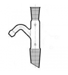 Переход с одной пришлифованной горловиной 14/23, одним керном 29/32 и изогнутым вниз отводом под резиновую трубку представляет собой соединительный элемент для сборки различных лабораторных приборов. Изделие применяется, когда необходимо перейти от взаимозаменяемого конуса одного размера к другому..