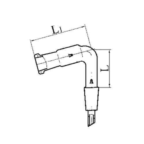Изгиб типа КМ (керн-Муфта). Является соединительным элементом в лабораторных установках и приборах. Изготовлен из боросиликатного стекла (ТС) или из химически устойчивого стекла (ХС3). Выполнен по ГОСТ 25336-82. Подходит для аппаратов, через которые пропускаются агрессивные газы или жидкости, а также горячие газы или жидкости. Его главная задача – изменить направление движения реакционных масс. Угол изгиба -75°.