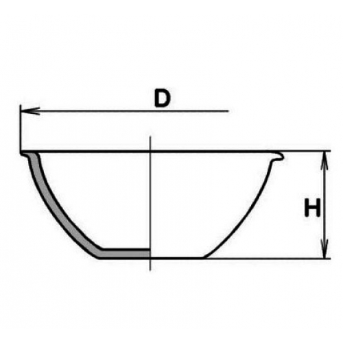 Чаша для выпаривания, вместительностью 400 мл, диаметром в самом широком месте 150 мм и высотой 58 мм. Особенности: чаша круглая, круглодонная, с носиком. Носик одинаково удобен как для работы с растворами, так и для работы с порошками. Диаметр чаши большой относительно высоты, что создает идеальные условия для быстрого выпаривания растворов с большой поверхности.