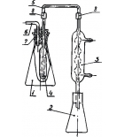 Предназначен для определения водонасыщенности исследуемого грунта, а также других Материалов путем извлечения твердых веществ легкокипящими растворителями. Состоит из холодильника поз.1, ловушки поз.2, приемной колбы поз.5, соединенных между собой с помощью шлифов конических взаимозаменяемых, стак..